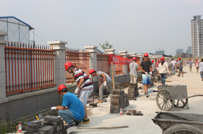 9月10日下午,博宏建設項目管理部在英才小學項目部舉辦首屆職砌磚比賽,來自各項目部的9支參賽隊伍18名砌磚能手同場競技,集團公司工會主席邢榮斌、質檢部副部長羅艷明、范濤、博宏建設副總經理秦林等觀賽指導工作,項目部其他成員在現場加油助威,而且引來眾多現場施工的農民工觀看