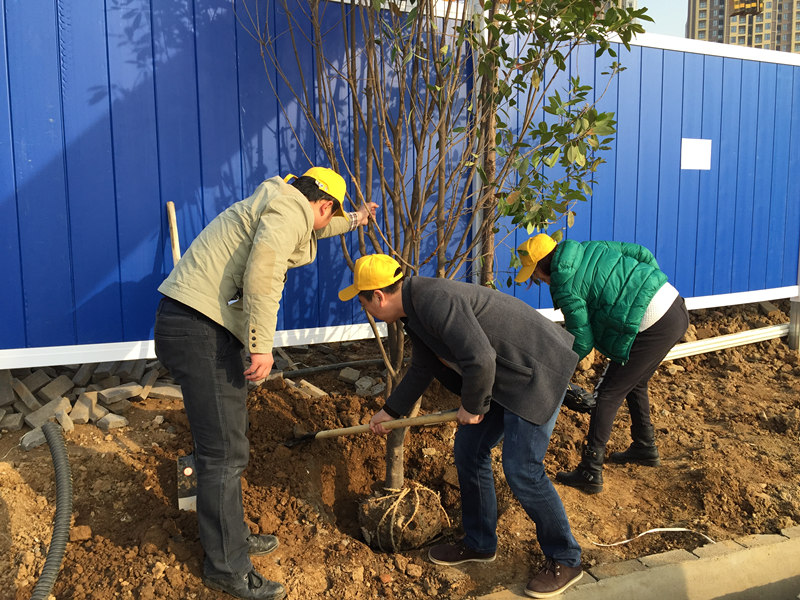 早春時節,寒意猶在,但擋不住博宏建設志愿者“共建綠色家園,營造優美環境”的熱情。3月12日上午,博宏建設志愿者一行40余人,在公司黨支部書記的帶隊下,扛著鐵鍬,前往正在實施湖泊整治的墨水湖邊。按照事先準備的種植規范,志愿者們短短一上午便完成20余棵紅葉石楠、30余棵水杉和一筐麥冬、鳶尾花的種植任務。