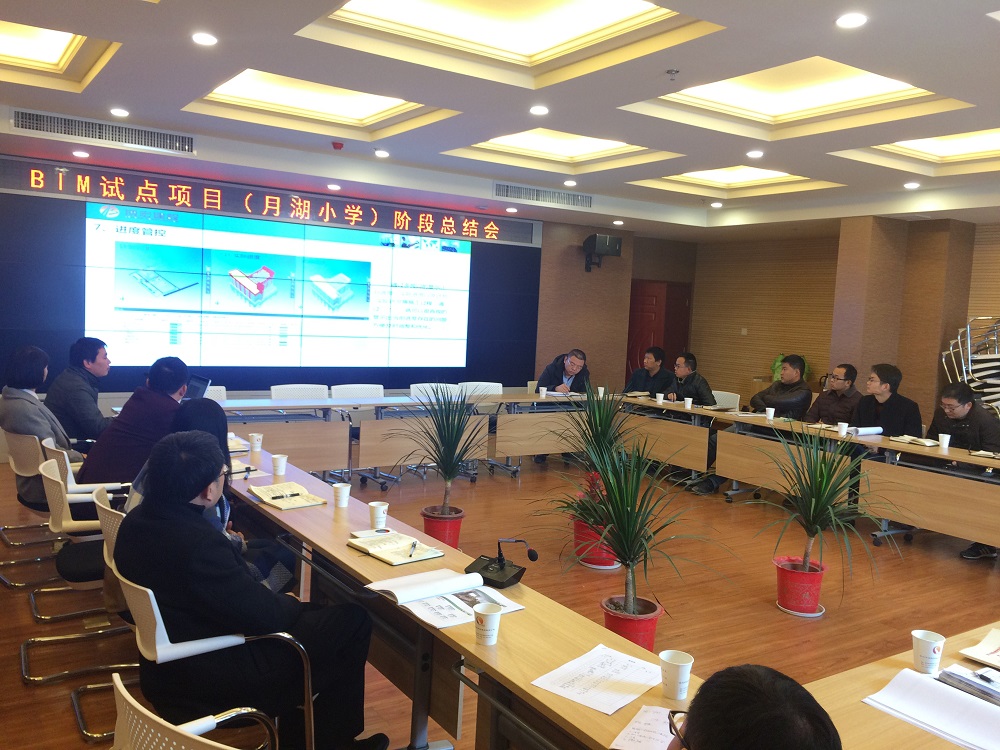 會上,博宏建設總工辦通過綜合運用PPT演示、視頻動畫、文字講解等多種方式,全方位、多層次地展示了對BIM技術的學習、理解以及創新應用的階段性成果,著重對BIM優勢、國家BIM扶持政策、月湖小學項目BIM中心組織團隊建設、前期基礎準備、BIM技術在月湖小學上的13項綜合運用等進行了詳細匯報,總結了BIM應用以來的收或與存在問題,對下一步工作開展提出了幾點建議。