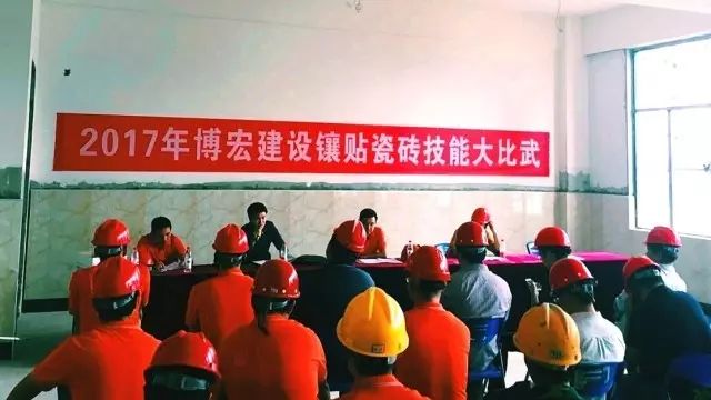 為大力弘揚工匠精神,提升操作工人技能水平,以賽促學,學以致用,在公司形成良好的學習氛圍,9月30日,博宏建設瓷磚鑲貼操作技能比武大賽在四新中學項目隆重上演。
