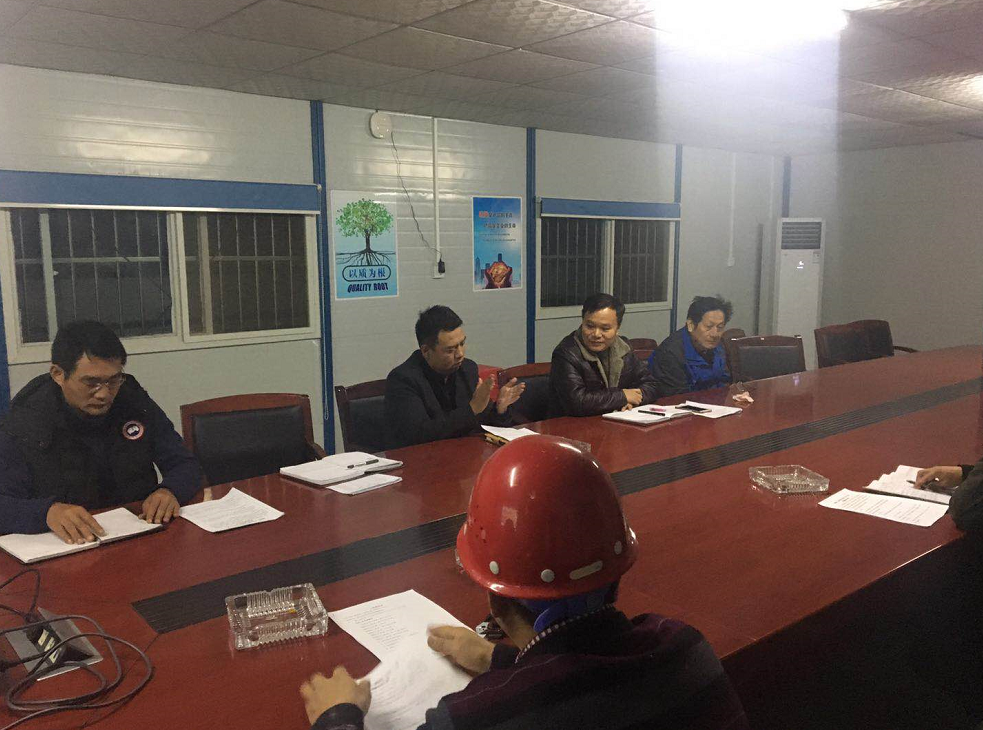 入冬以后,黃石的夜晚變得異常寒冷,然而就在這樣寒冷的夜晚,依然可以看到黃石正信花園項目部仍燈火通明,一群執著的博宏人在加班加點工作。2017112323時許,為不影響第二天施工現場正常作業,項目部連夜組織召開“正信花園勞動競賽動員大會”,項目部所有成員以及施工班組人員,緊緊圍繞搶工期這一中心任務,齊心協力、攻堅克難,積極投入到了這場搶抓工期的戰役中。