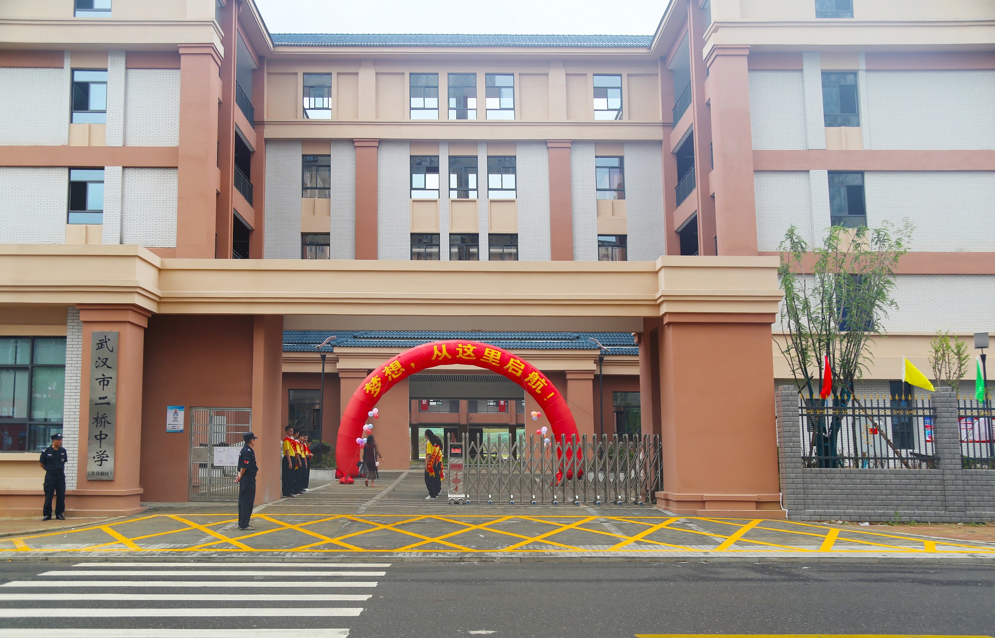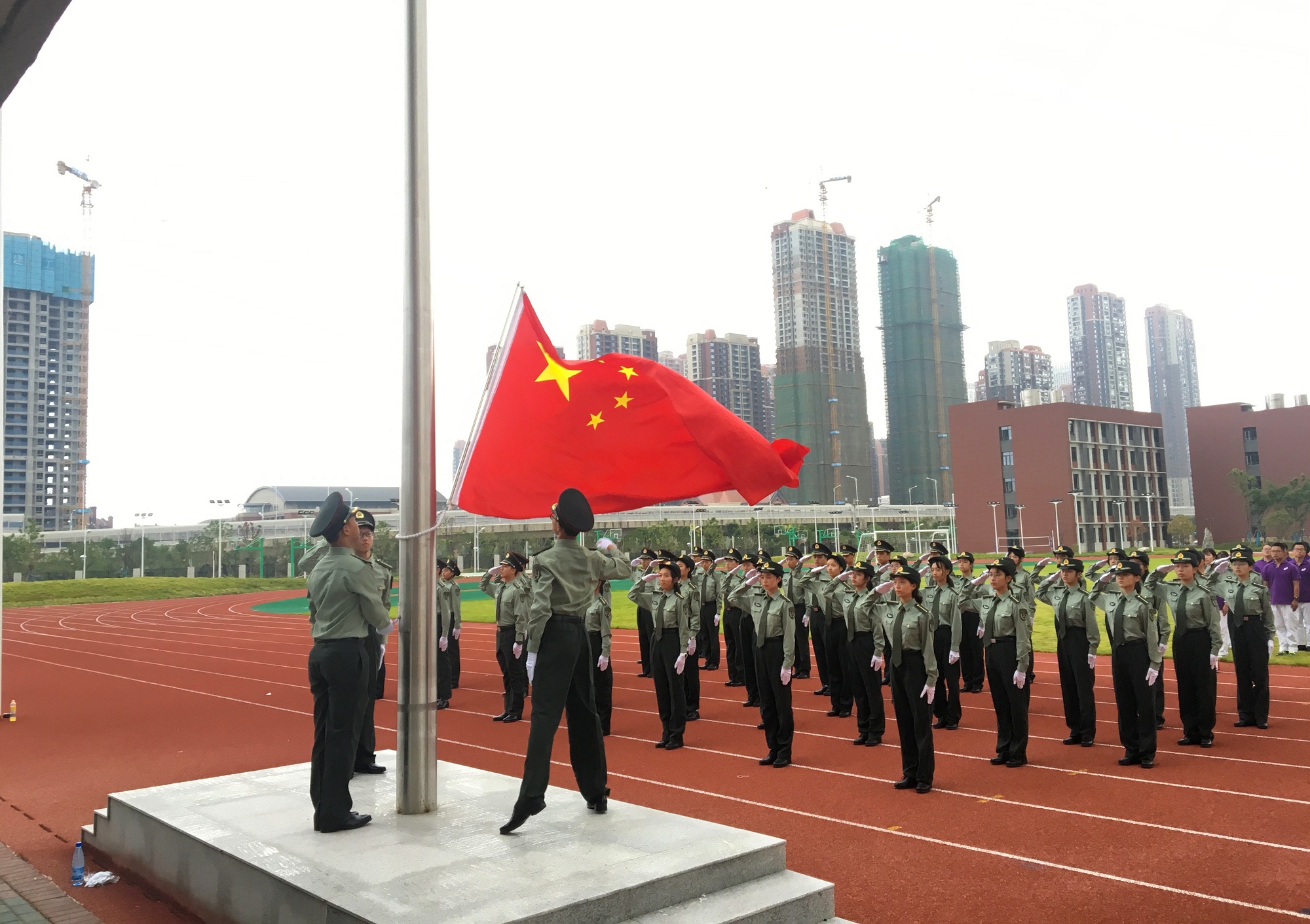 四新中學作為百年名校武漢市第三中學的新校區,學校建設中曾先后榮獲“湖北省建筑結構優質工程”“武漢市十大魅力工地”等多項省市級建筑獎項。開學典禮中,廣大學生匯集在寬闊的操場上,神采飛揚,朝氣蓬勃,國旗儀仗隊身姿挺拔、步履鏗鏘,盡顯名校風采。