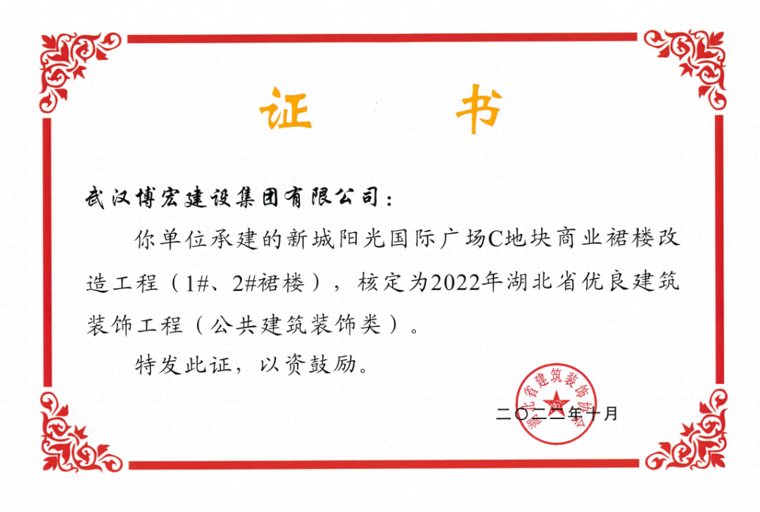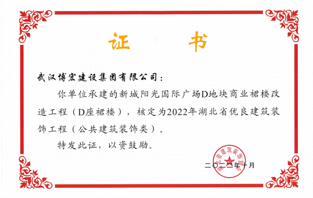 喜報!博宏建設集團四項工程榮獲“湖北省優良建筑裝飾工程”