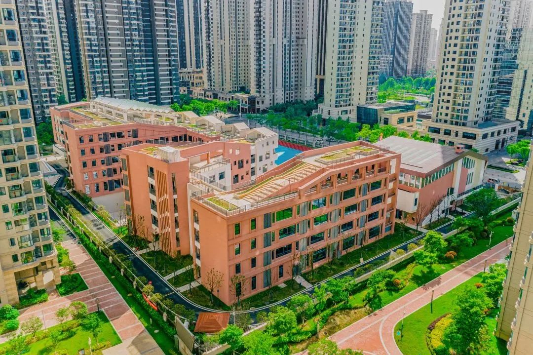 國(guó)博三小位于武漢市漢陽(yáng)區(qū)梅子南街以北,梅子?xùn)|路以東,項(xiàng)目總用地面積為 17387.90 ㎡,總建筑面積為 34829㎡。國(guó)博三小將線性外廊立面體塊化,分段鏤空的洞口式設(shè)計(jì)使學(xué)校造型充滿童話色彩,通過(guò)開(kāi)敞平臺(tái)、首層架空、互動(dòng)中庭、連廊平臺(tái)、下沉庭院、屋頂空間等設(shè)計(jì)手段,營(yíng)造出多樣化的校園空間。