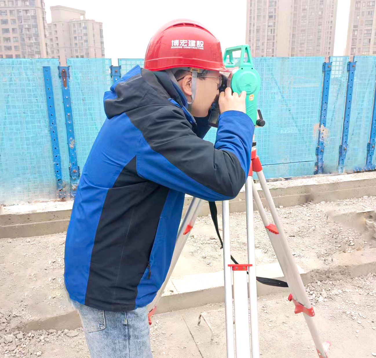 入職第一天,王杰接手的第一個任務是配合同事完成新港臨江匯項目1號樓的放線工作。由于是裝配式建筑,在還未吊裝樓梯的情況下,人員無法從樓梯上至作業層樓板,王杰他們只能借助爬架爬梯翻到樓板上完成放線工作,在三十米的高空,爬架和結構外邊緣有較大距離,對于初入工地從未接觸過建筑施工現場的王杰來說,這是從未經歷過的挑戰,嘗試了幾次后,仍然無法完成跨越,同事們也紛紛安慰勸說讓他放棄,好強的他,每每想到放棄,就覺得內心不甘,在認真觀察及努力嘗試后,王杰最終克服了內心的恐懼,順利登上樓板完成了放線工作。