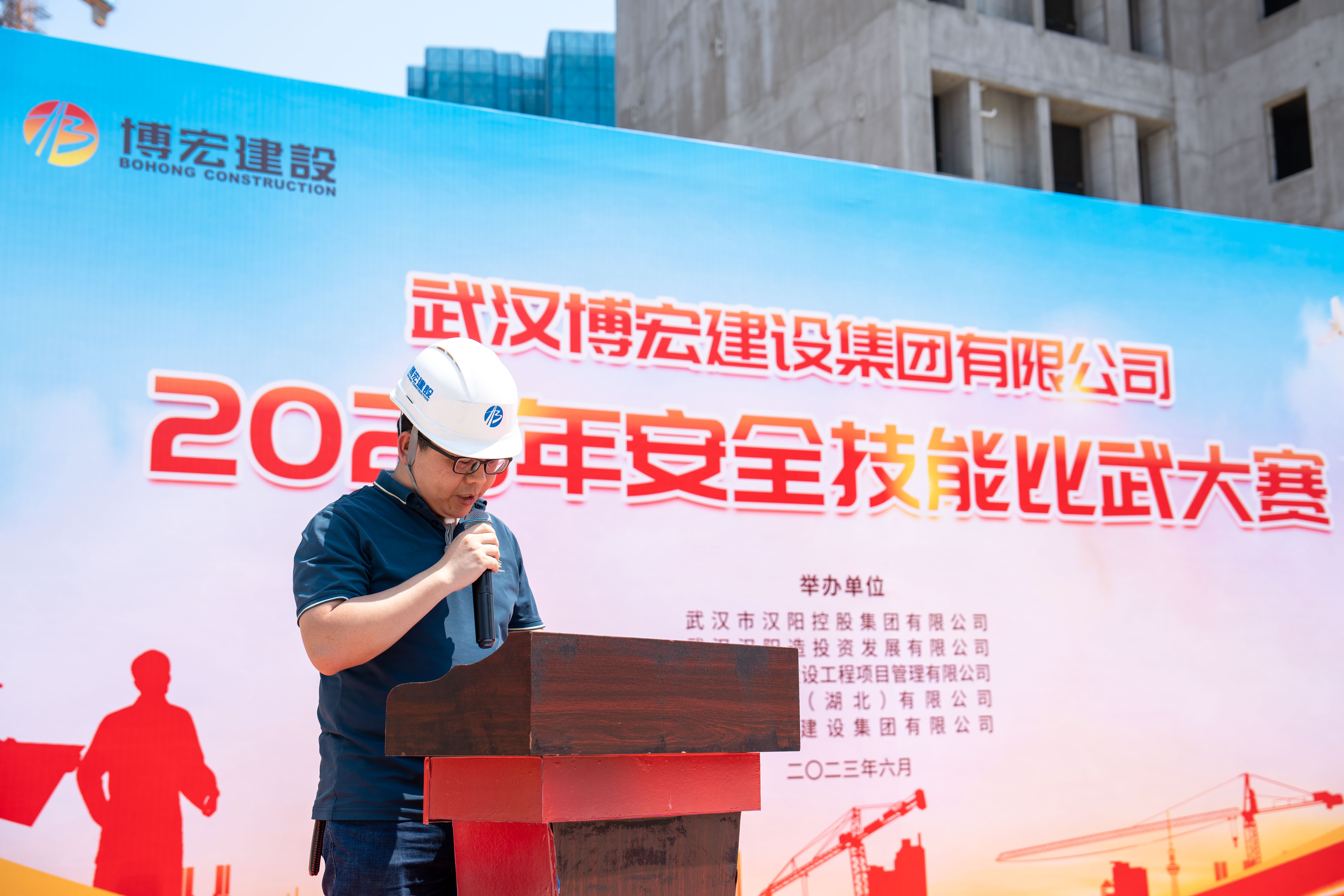 6月9日下午,博宏建設(shè)集團(tuán)2023年安全技能比武大賽在米糧村還建房A地塊順利舉行。武漢市漢陽控股集團(tuán)有限公司項(xiàng)目管理部黃圓,武漢漢陽造投資發(fā)展有限公司工程部部長呂飛翔,武漢市建元建設(shè)工程項(xiàng)目管理有限公司房建部副部長劉志勇,南方咨詢(湖北)有限公司項(xiàng)目總監(jiān)許文真等參建單位相關(guān)領(lǐng)導(dǎo),博宏建設(shè)集團(tuán)總經(jīng)理助理羅平照、總經(jīng)理助理李暉等相關(guān)領(lǐng)導(dǎo)出席了本次啟動(dòng)儀式,各職能部門、8支參賽隊(duì)伍共50余人參加活動(dòng)。