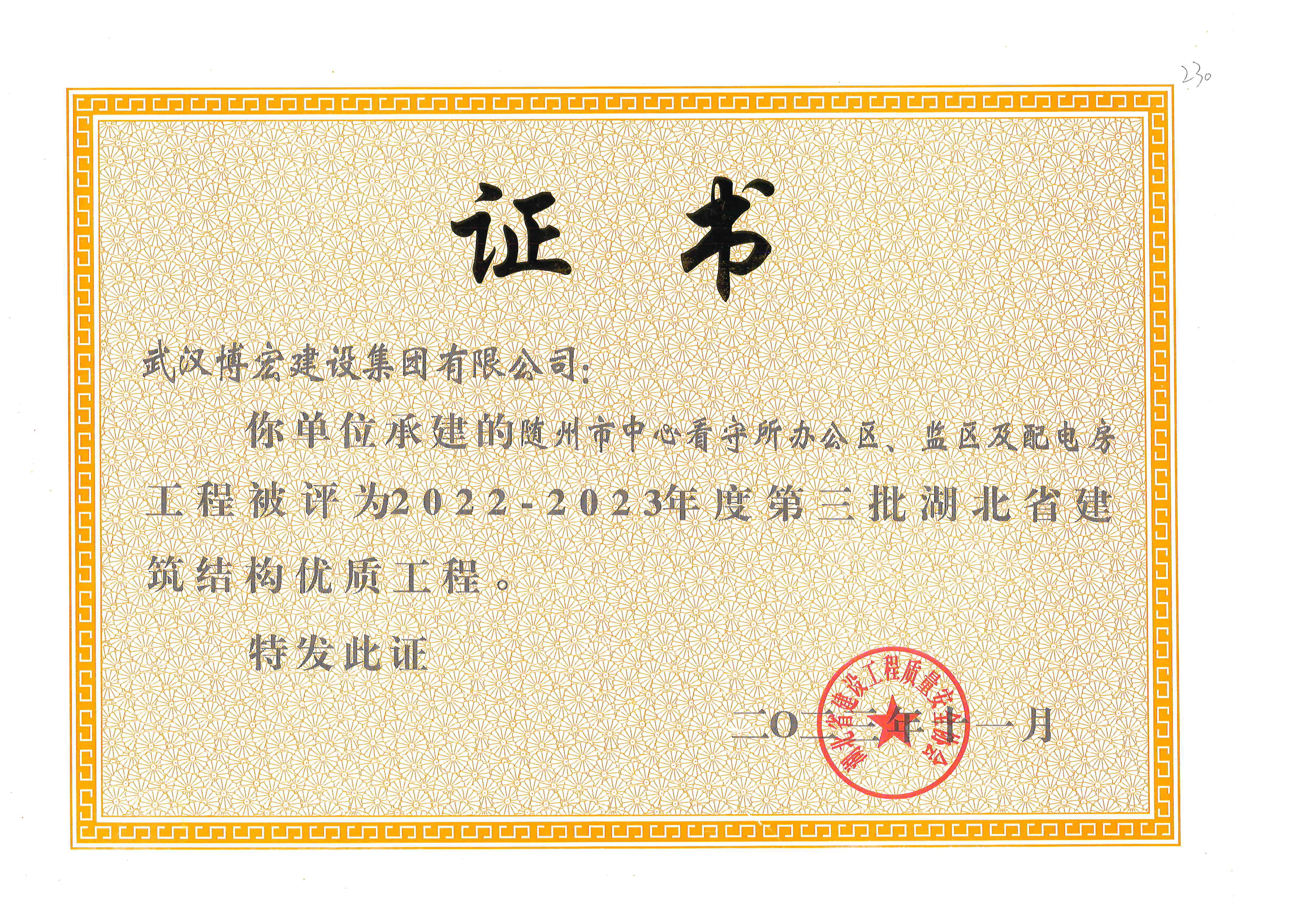 近日,湖北省建設工程質量安全協會公布2022-2023年度第三批湖北省建筑結構優質工程項目名單,由博宏建設集團承建的居住項目(黃金口村還建房B地塊)17#樓,居住項目(四臺村還建房B地塊)1#樓,新建商業服務業設施項目(中南科研設計中心)副樓,商業、商務設施、居住項目(產權調換房)3#樓、6#樓,國投·汀蘭7#樓、8#樓、9#樓、12#樓,隨州市中心看守所辦公區、監區及配電房榮獲湖北省建筑結構優質工程獎。